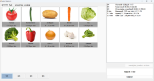 dit is een windows forms app die producten uit een database haalt, weergeeft, en dan afhankelijk van de type prijs(per stuk of per kilo) de weergave in de bon aanpast, de bon is slim zodat als je later nog meer van een product toevoegt dat het product in de bon wordt aangepast in plaats van nog een keer toegevoegdt wordt.