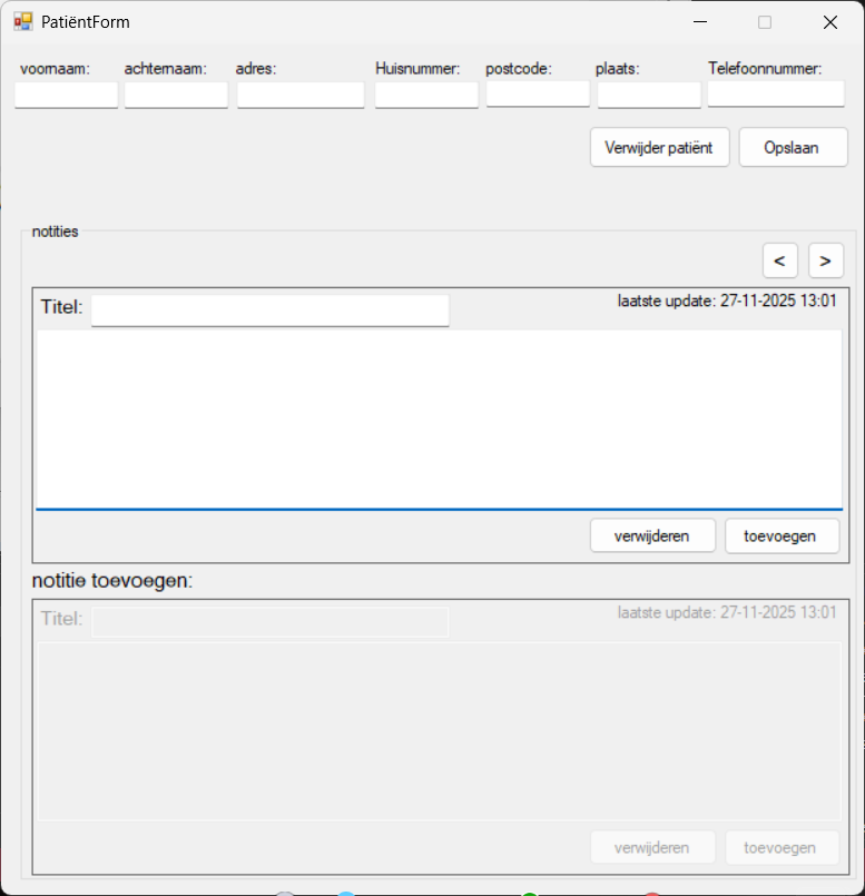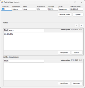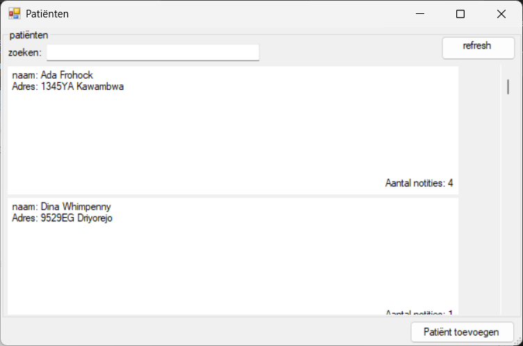 dit is een huisarts app met 250 patiënten in een database, de database gebruikt 2 tabelen, één voor de patiënten, en één voor de notities.