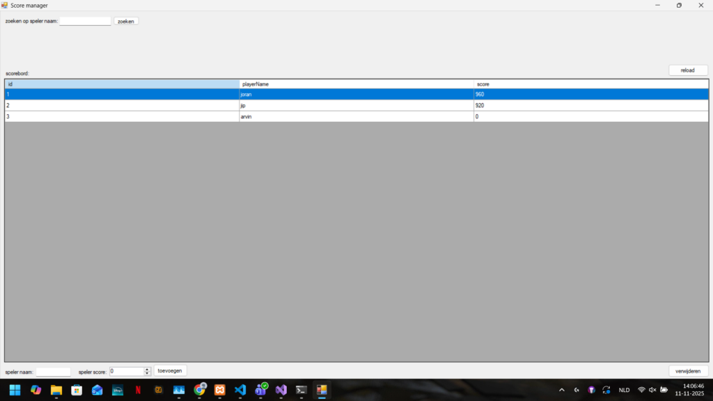In dit project moest ik met een web en game developer een javascipt game maken, ik moest, omdat ik de app richting gekozen heb vorig school jaar, een app maken die de score kan uitlezen uit json. Ik heb er voor gekozen om een app te maken met voledig CRUD en als uitdaging heb ik er ook voor gekozen om voor dit project een API te maken in C#, de score wordt voor dit project opgeslagen in een sql database en de api haalt data uit de database op en geef json terug. deze api werkt volledig en de app en api heeft dus ook volledig CRUD